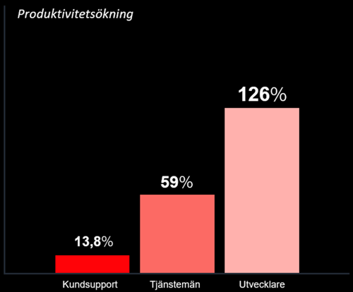 Flera studier visar en betydande produktivitetsökning hos användare som tillgår AI-modeller, även utan föregående utbildning. Dessa resultat understryker inte bara ökad effektivitet, utan även förbättrad arbetskvalitet. Vidare indikerar efterföljande studier att särskilt individer med lägre initial prestation upplever proportionellt större förbättringar. Dessa insikter betonar AI:s förmåga att både effektivisera arbetsflöden och höja arbetsstandarden över olika kompetensnivåer.