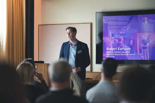 Robert Karlsson, Senior Specialist Microsoft pratade det senaste från Microsoft kring Teamsmöten och mötesrum samt en uppdatering kring Microsofts AI story och Microsoft Places.